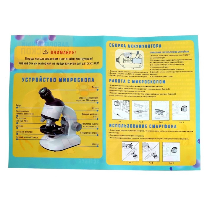 Микроскоп «Юный биолог», увеличение х80, х200, х450, с подсветкой