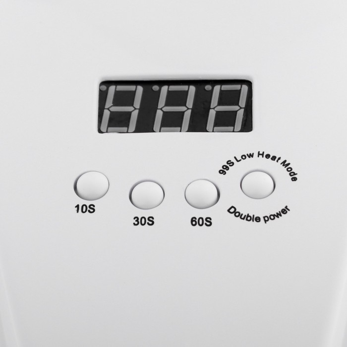 Устройство оборудовано таймером на 10, 30 и 60 секунд. Вы можете настроить время работы лампы на корпусе устройства. Для удобства воспользуйтесь дисплеем, он отображает оставшееся время таймера.
