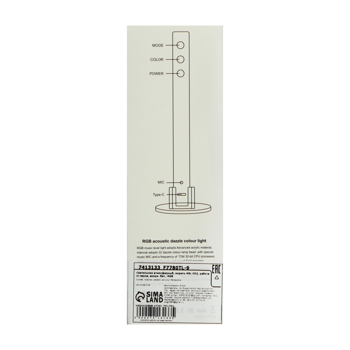 Светильник атмосферный NSL-002, работа от звука, аккум. бат., RGB