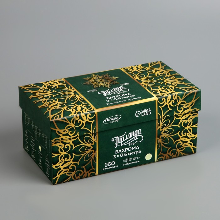 Гирлянда «Бахрома» 3 × 0.6 м, IP44, УМС, тёмная нить, 160 LED, свечение тёплое белое, 220 В