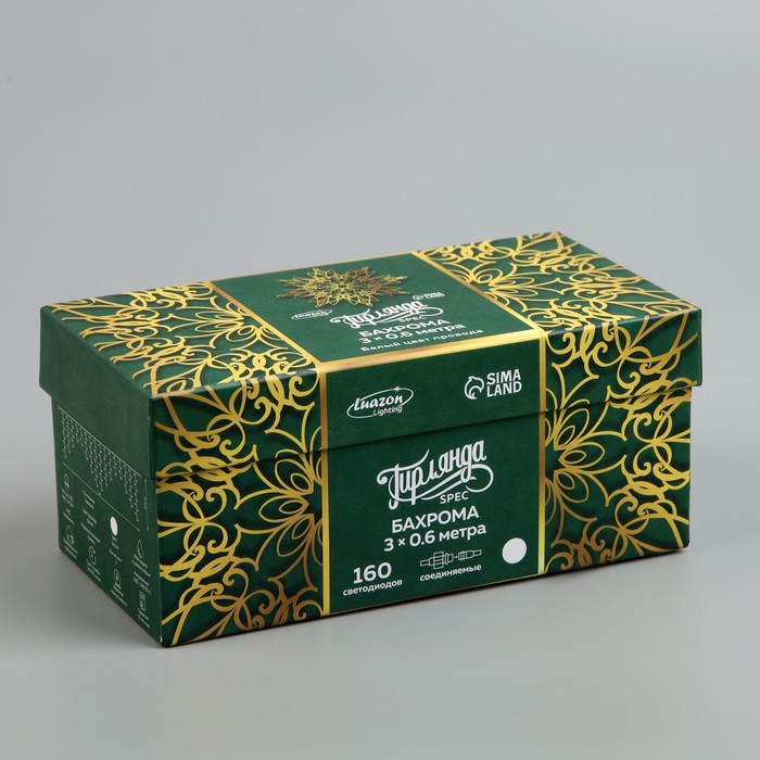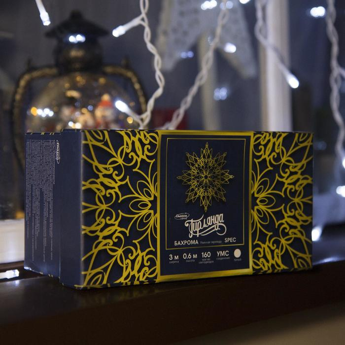 Гирлянда «Бахрома» 3 × 0.6 м, IP44, УМС, белая нить, 160 LED, свечение белое, 220 В