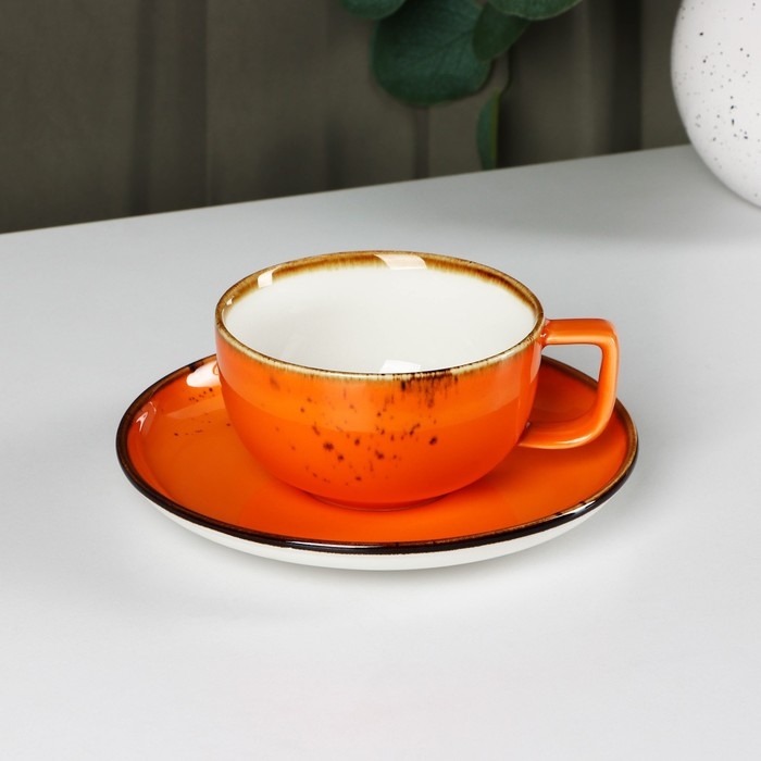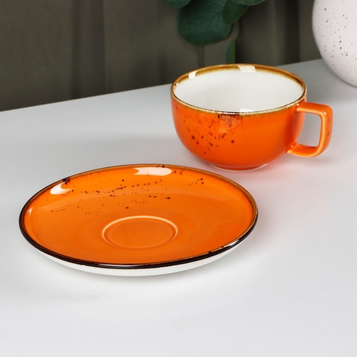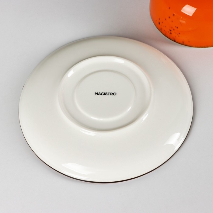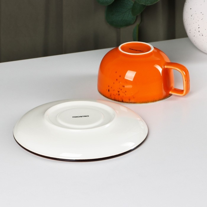 Чайная пара фарфоровая Magistro «Церера», 2 предмета: чашка 250 мл, блюдце d=16,3 см, цвет оранжевый