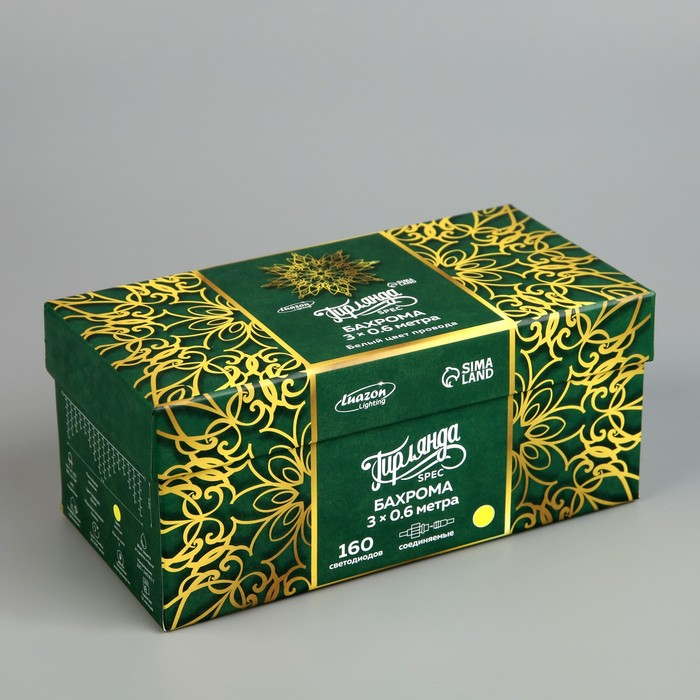 Гирлянда «Бахрома» 3 × 0.6 м, IP44, УМС, белая нить, 160 LED, свечение жёлтое, 220 В