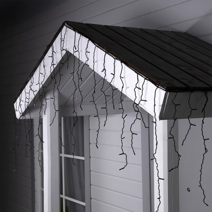 Гирлянда «Бахрома» 3 × 0.6 м, IP44, УМС, тёмная нить, 160 LED, свечение бело-синее, мигание, 220 В