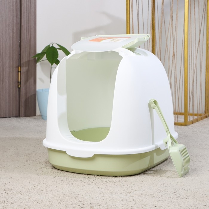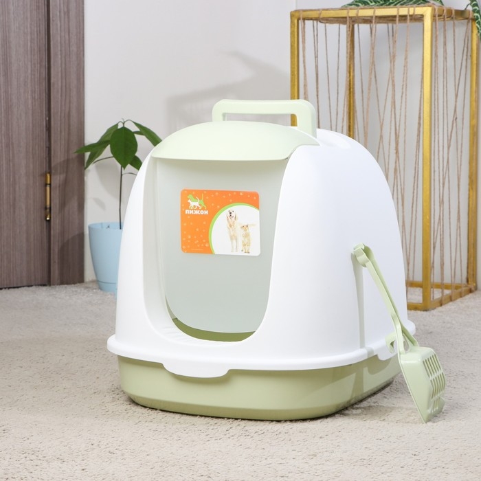 Туалет закрытый с совком, 47 х 40 х 39 см, бело-зеленый