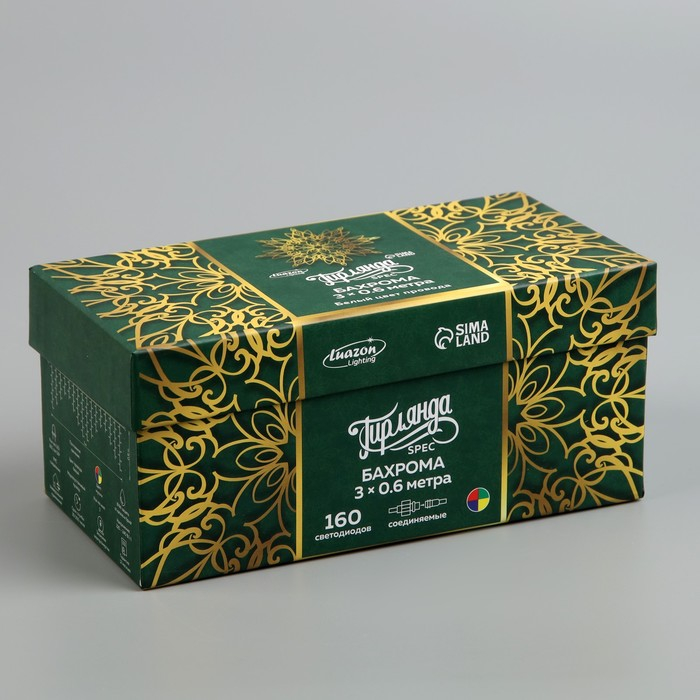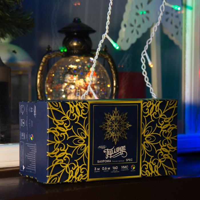 Гирлянда «Бахрома» 3 × 0.6 м, IP44, УМС, белая нить, 160 LED, свечение мульти, 220 В