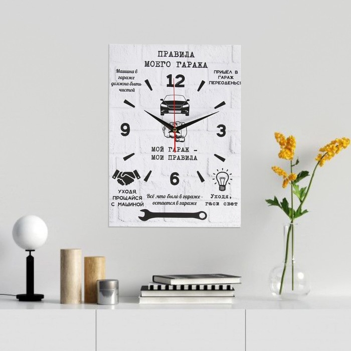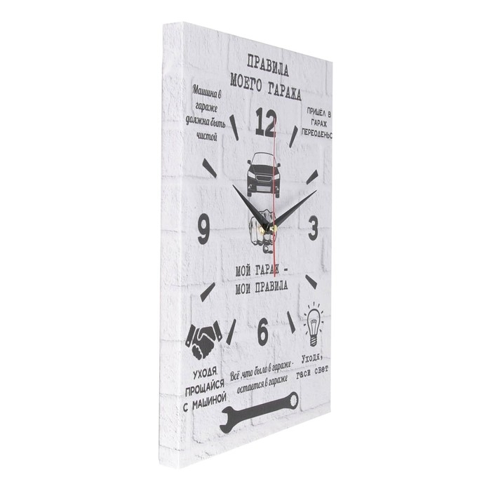 Часы-картина настенные, интерьерные "Правила гаража", 30 х 40 см, на холсте, бесшумные