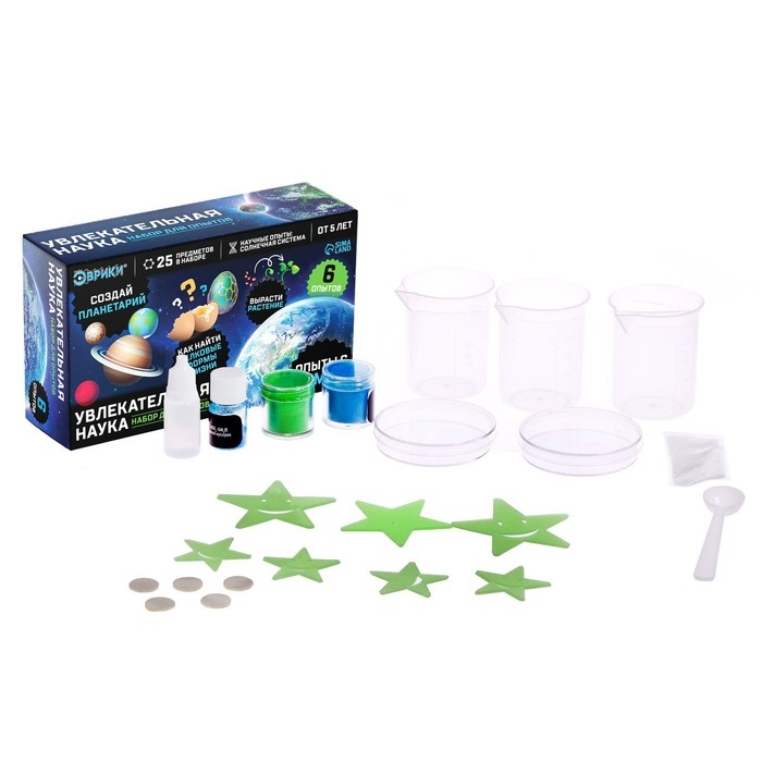 С набором для опытов «Эврики» ребёнок узнает об удивительных свойствах веществ, проведёт несколько интересных экспериментов, связанных с особенностями одной из планет Солнечной системы.