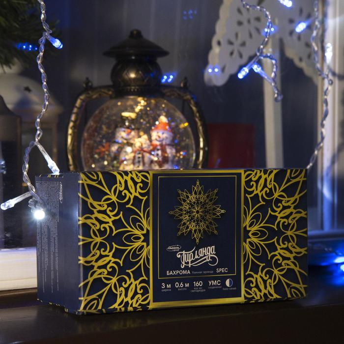 Гирлянда «Бахрома» 3 × 0.6 м, IP44, УМС, прозрачная нить, 160 LED, свечение бело-синее, мигание, 220 В