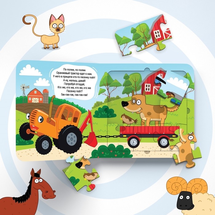 Книга картонная с пазлами «По полям, по полям!», «Синий Трактор», 12 стр.
