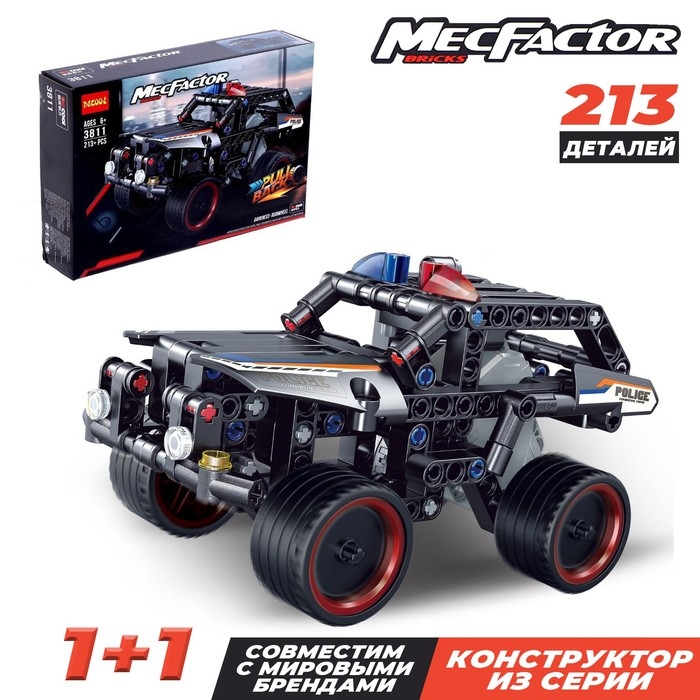 Конструктор с инерционным механизмом «Полицейский джип», 213 деталей