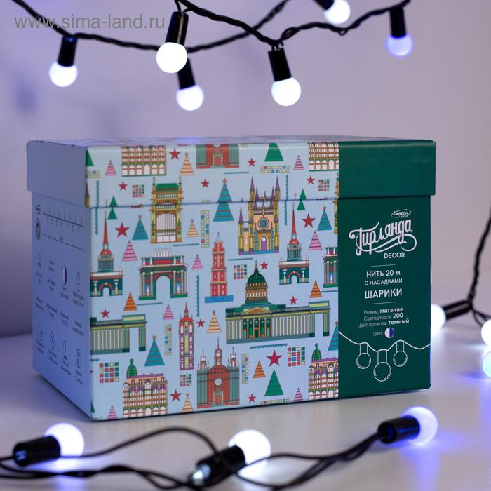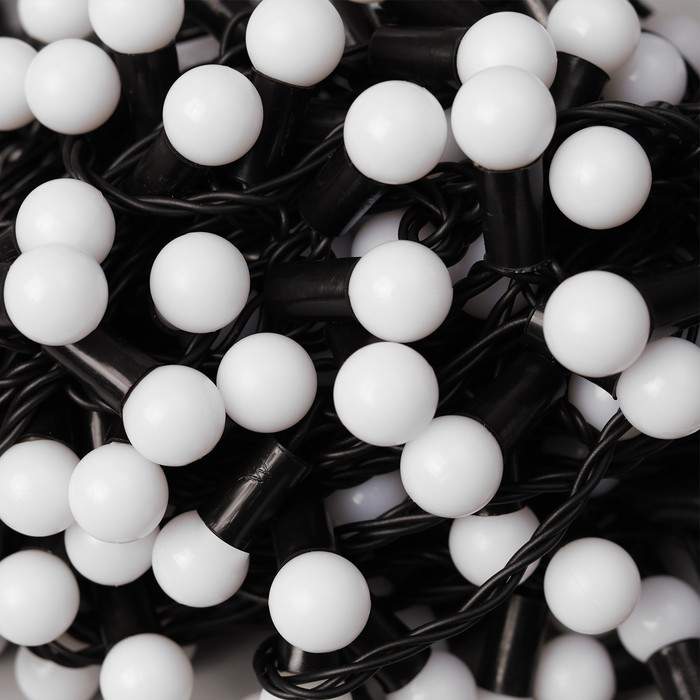 Гирлянда «Нить» 20 м с насадками «Шарики 1.5 см», IP44, тёмная нить, 200 LED, свечение бело-синее, мигание, 220 В