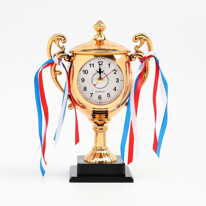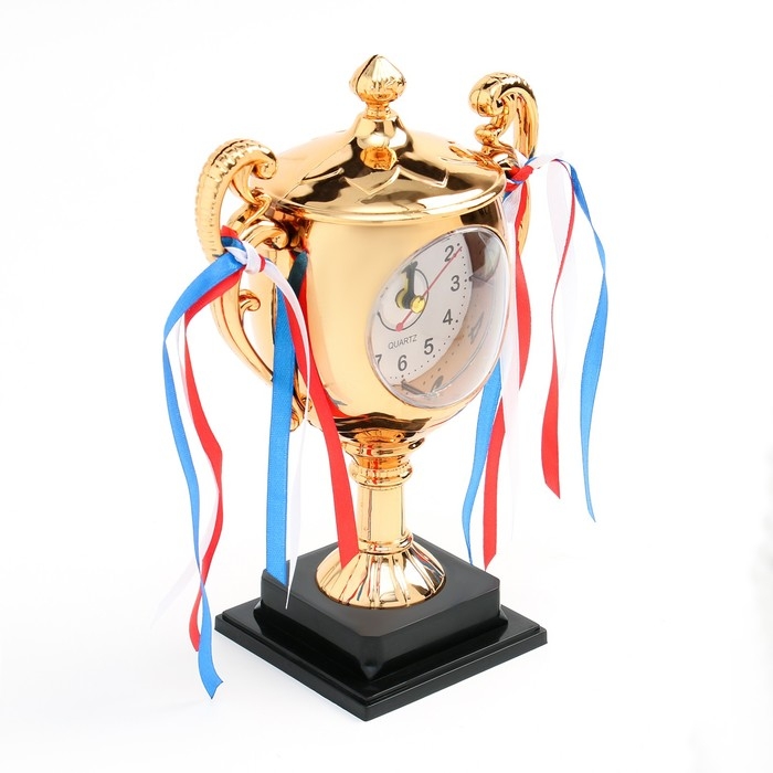 Часы с будильником представлены в оригинальном дизайне в форме наградного кубка, они отлично впишутся в интерьер. Интерьерные часы станут прекрасным декором для дома и дачи, их можно поставить как на прикроватную тумбочку в спальне, детской комнате, гостиной так и на стол или на комод в зале, холле или на кухне. Будильник настольный имеет кварцевый механизм, который гарантирует высокую точность хода. Часы настольные обладают громким будильником, ребенку и вам будет комфортно просыпаться, на работу и в школу. Будильник на батарейках не требует частой замены батареек благодаря экономичному механизму.
