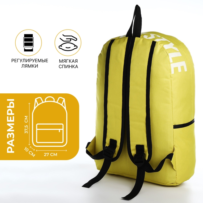 Рюкзак школьный на молнии, наружный карман, 2 боковых кармана, цвет жёлтый