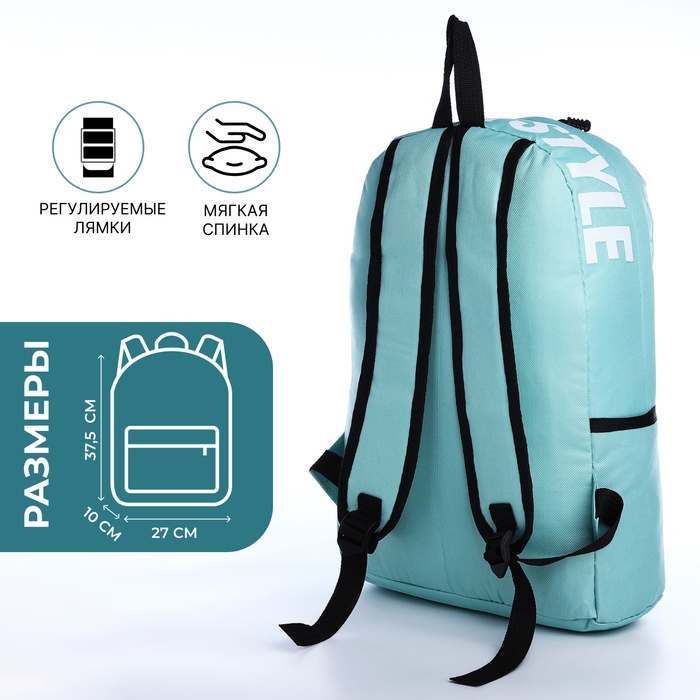Рюкзак школьный на молнии, наружный карман, 2 боковых кармана, цвет бирюзовый