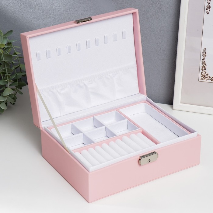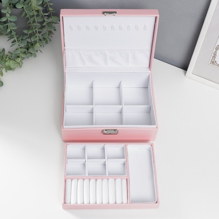Шкатулка кожзам для украшений "Розовая матовая" 9х23х17 см