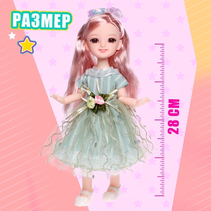 Кукла шарнирная «Амелия», 28 см, синее платье