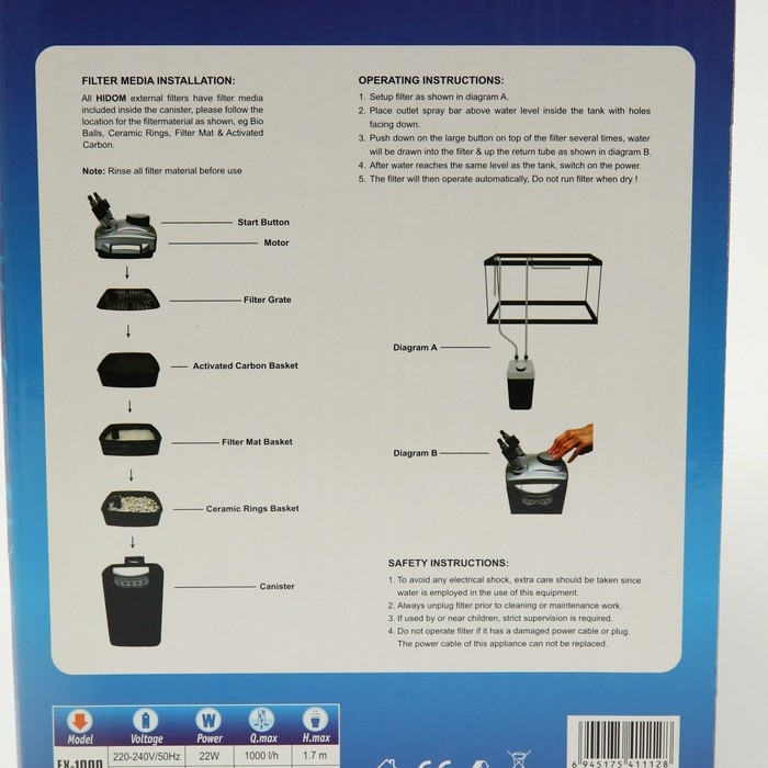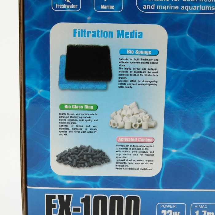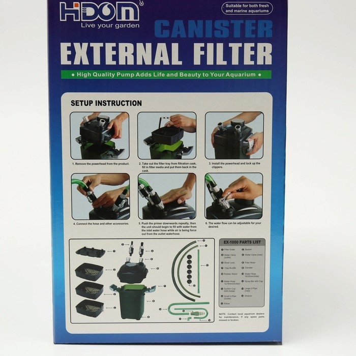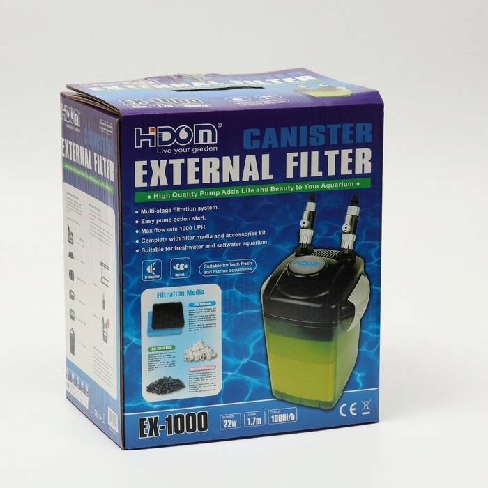 Внешний фильтр Hidom EX-1000, 1000 л/ч, 22 Вт, с комплектом наполнителей и аксессуаров