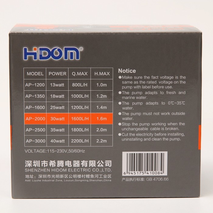 Помпа Hidom AP-2000, 1600 л/ч, 30 Вт, многуфункциональная 3 в 1