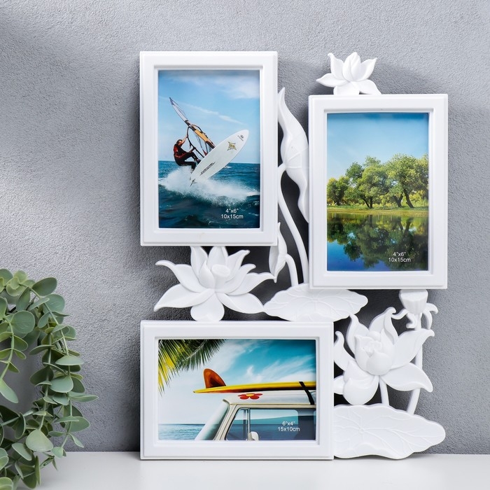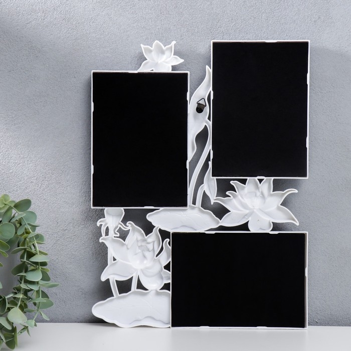 Фоторамка пластик на 3 фото 10х15 см "Лотосы" белый 36х27 см