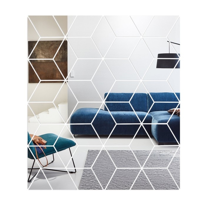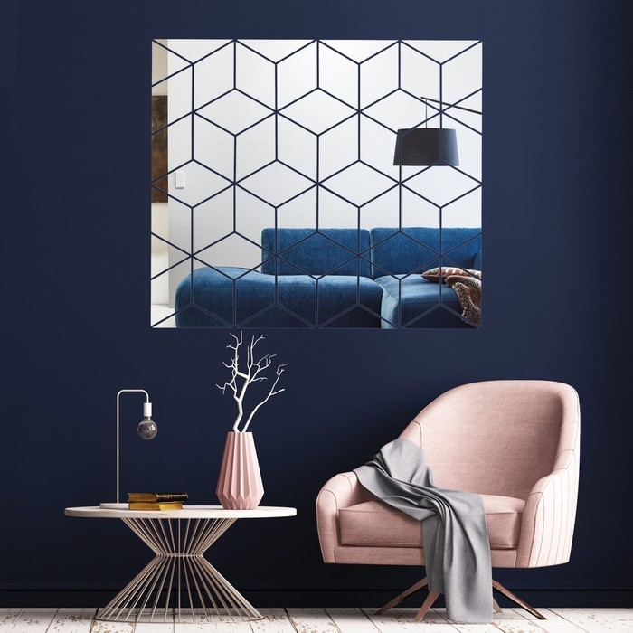 Наклейки интерьерные "Куб", зеркальные, декор настенный, панно 90 х 103 см, 54 эл.