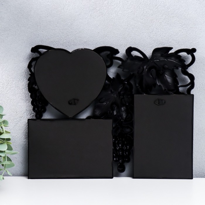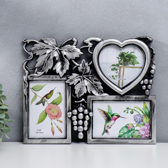 Фоторамка пластик на 3 фото 10х15, 13х13 см "Виноград" тёмное серебро 26х33 см
