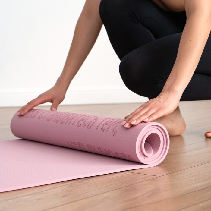 Коврик подходит для занятий йогой и фитнесом дома и в спортивных залах. Помогает в выполнении асан или других упражнений. Смягчает упор тела на твёрдую поверхность. Сохраняет форму после выполнения упражнений.