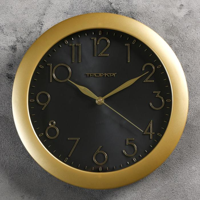 Часы настенные, серия: Классика, дискретный ход, d-29 см, золотистый обод