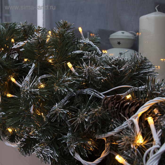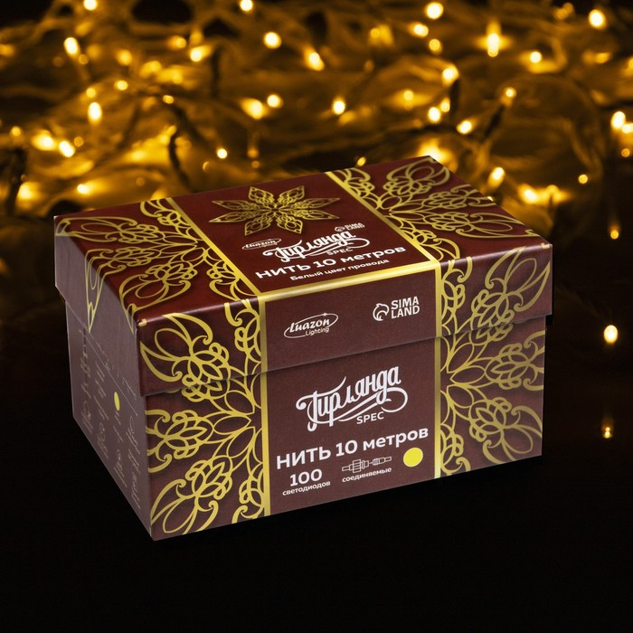 Гирлянда «Нить» 10 м, IP44, УМС, белая нить, 100 LED, свечение жёлтое, 220 В