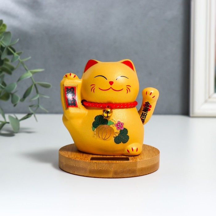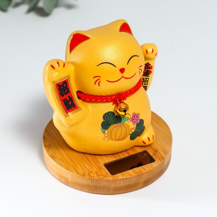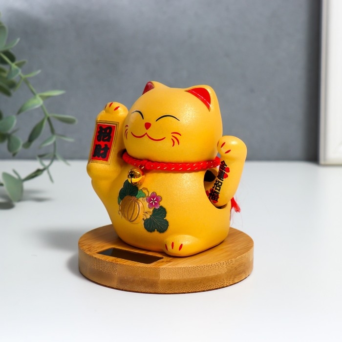 Маятник керамика "Манэки-нэко со свитком и тыковкой" от солнечных батарей 10х10х12 см