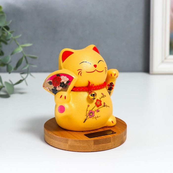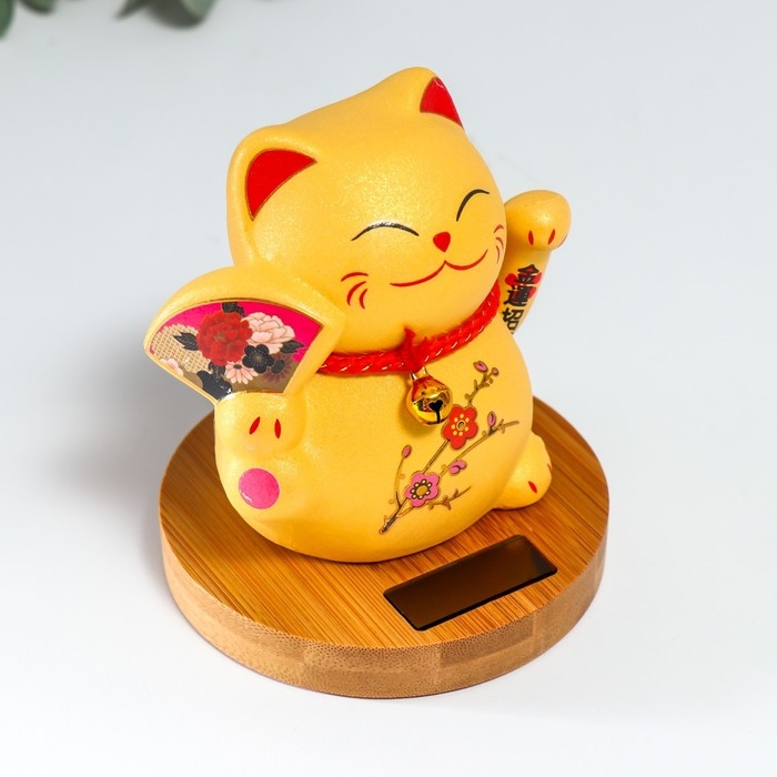Маятник керамика "Манэки-нэко с веером и сакурой" от солнечных батарей 10х10х12 см