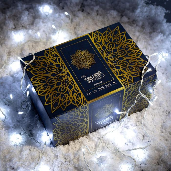 Гирлянда «Занавес» 2 × 6 м, IP44, УМС, белая нить, 1440 LED, свечение белое, 220 В