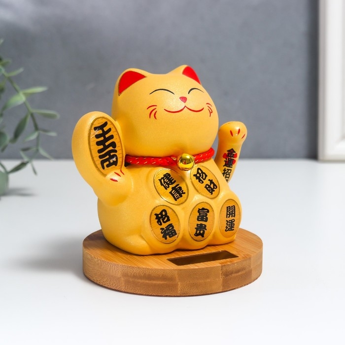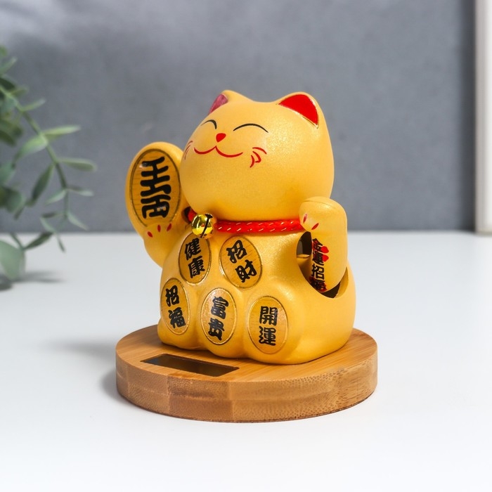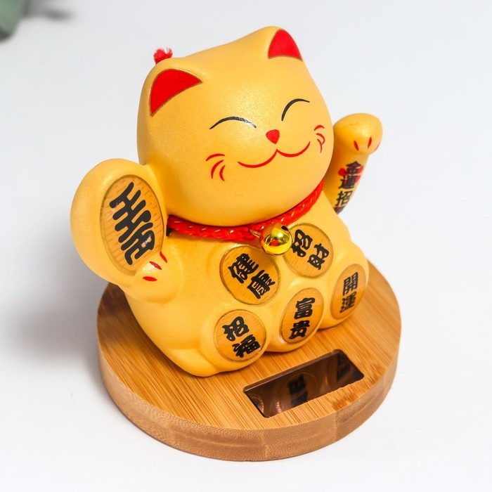 Маятник керамика "Манэки-нэко с иероглифами" от солнечных батарей 10х10х12 см