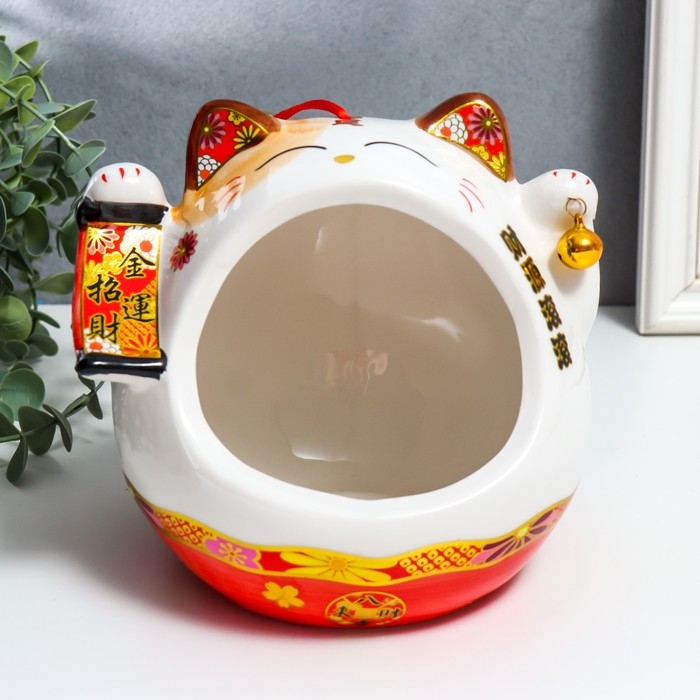 Сувенир подставка керамика "Манэки-нэко со свитком и колокольчиком" МИКС 21х16х20 см