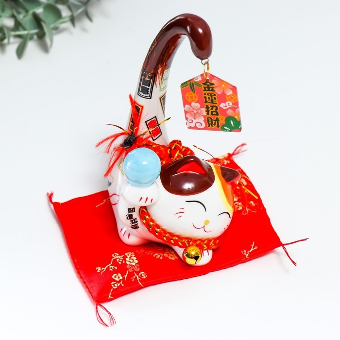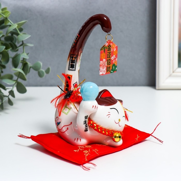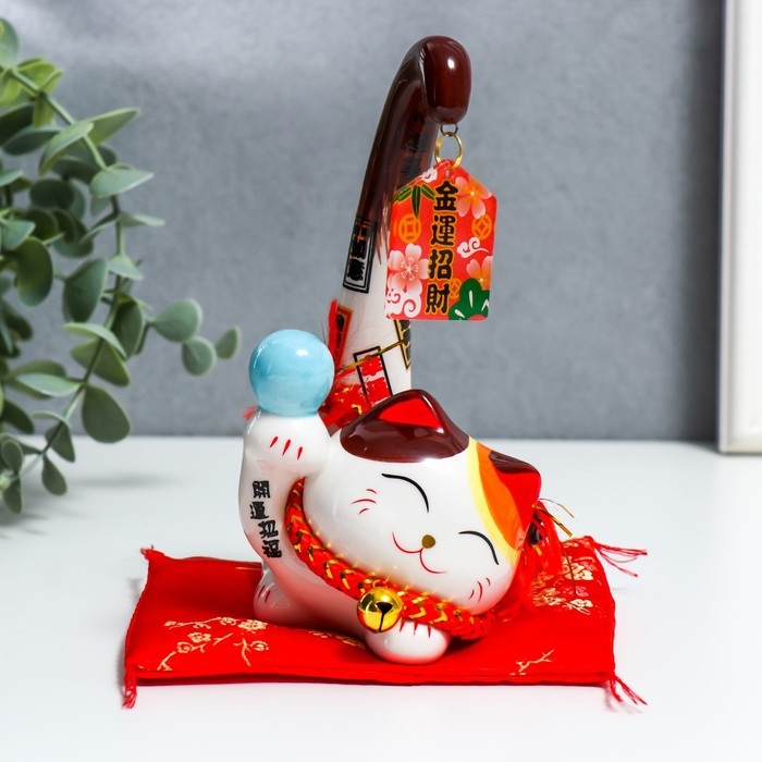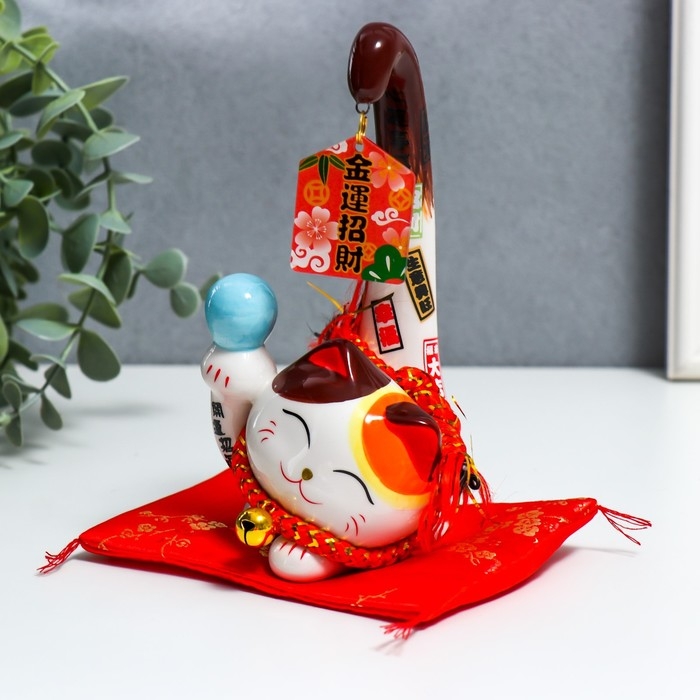 Сувенир керамика "Манэки-нэко с шариком и подвеской" 9х7х15,5 см