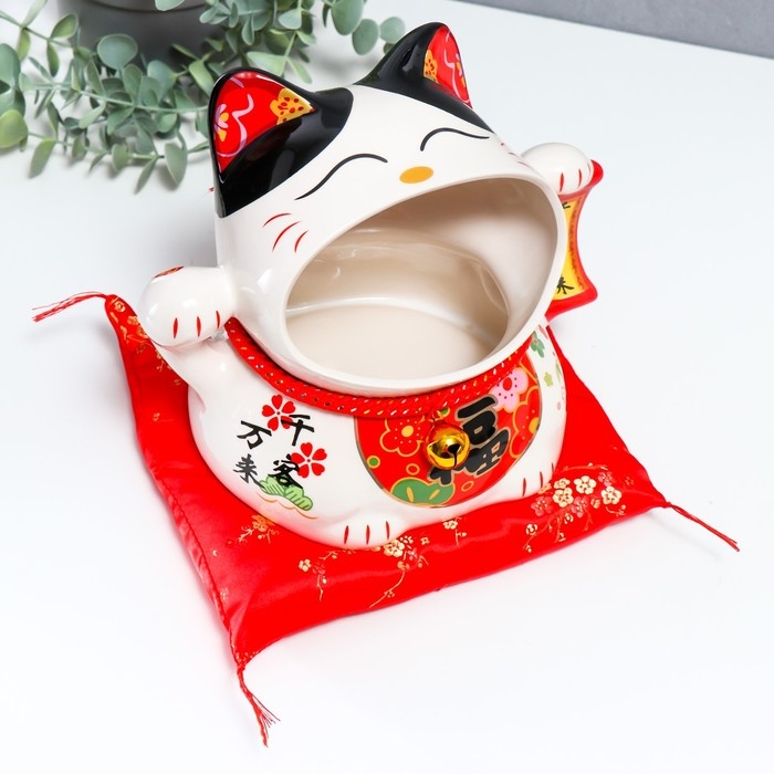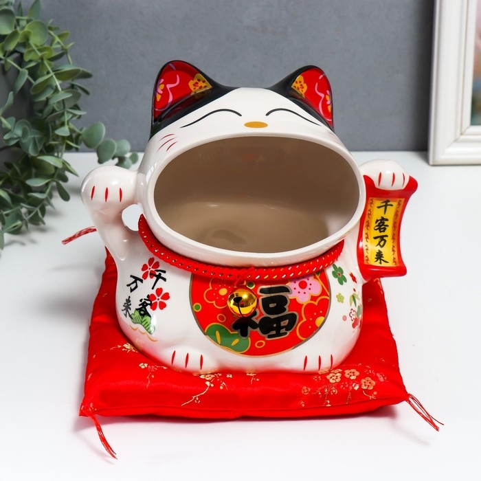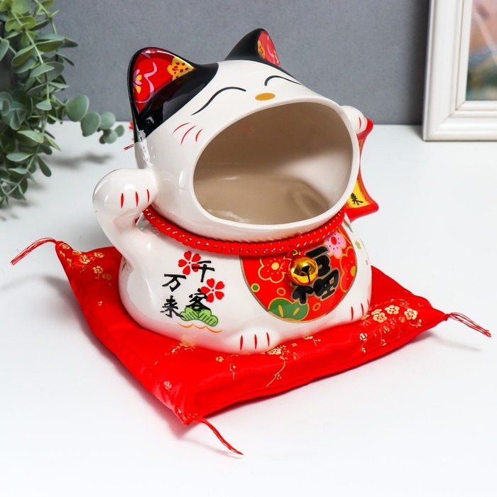 Сувенир подставка керамика "Манэки-нэко со свитком" 22х17,5х18 см