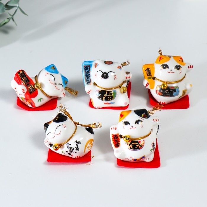 Сувенир керамика "Манэки-нэко - удовольствие" 4,5х3,8х4,6 см набор 5 шт