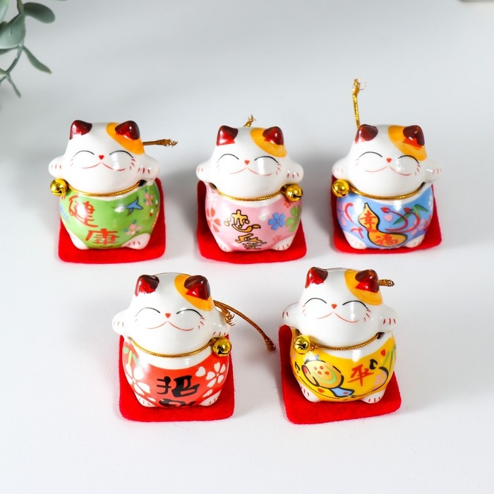 Сувенир керамика "Манэки-нэко в костюмчиках на подушечках" 4,5х3,8х4,6 см набор 5 шт