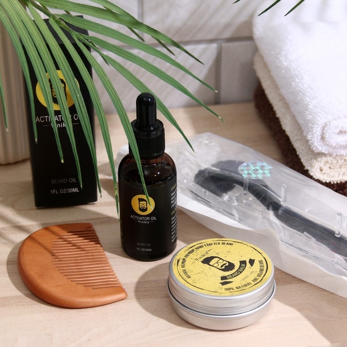 В набор входит: воск для бороды и усов, масло для бороды и усов, расческа, мезороллер.