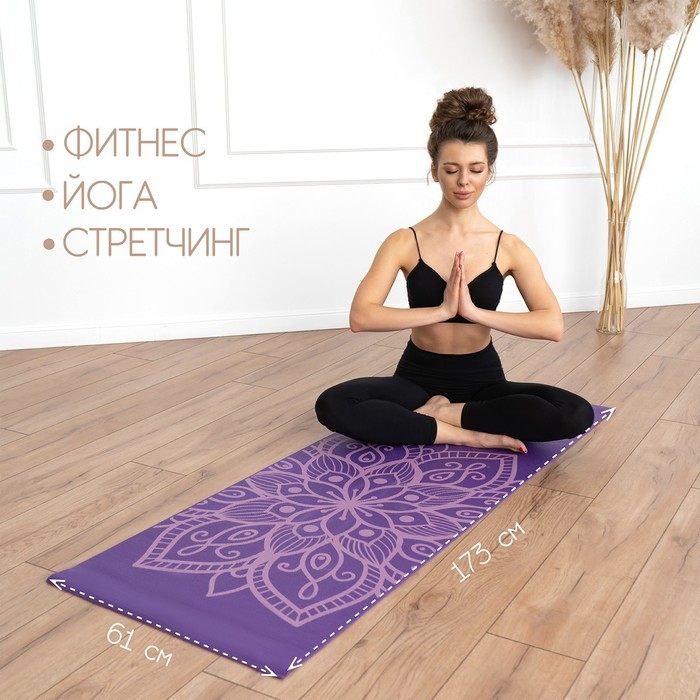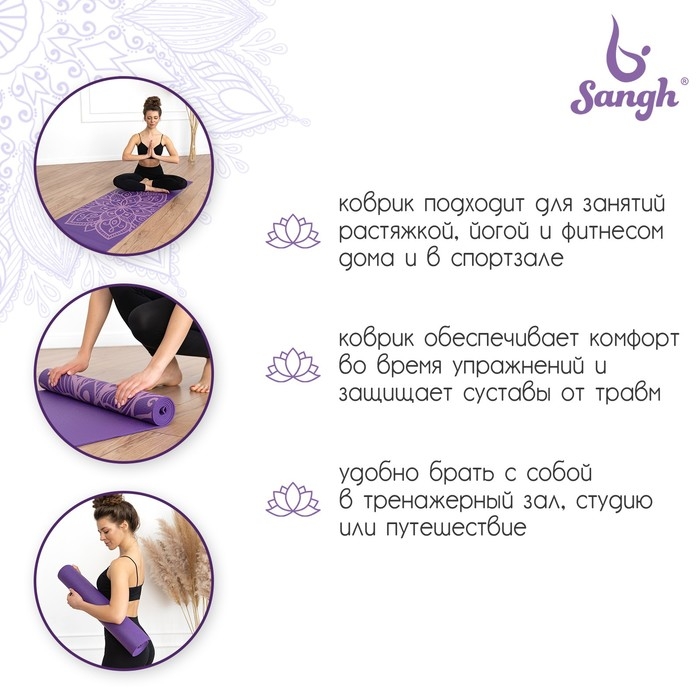 Коврик для йоги Sangh «Мандала», 173х61х0,4 см, цвет фиолетовый