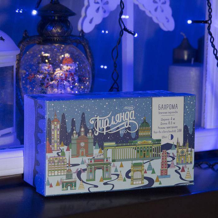 Гирлянда «Бахрома» 4 × 0.6 м, IP44, тёмная нить, 180 LED, свечение бело-синее, мигание, 220 В