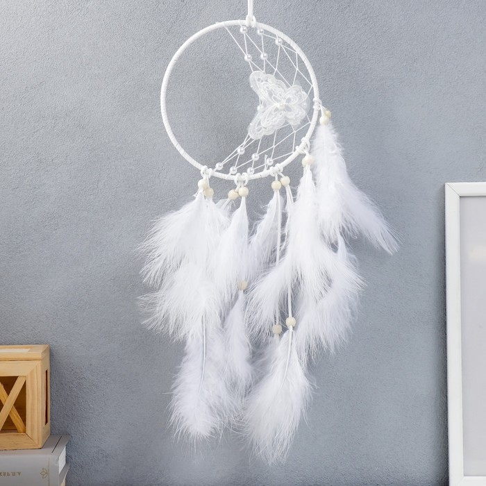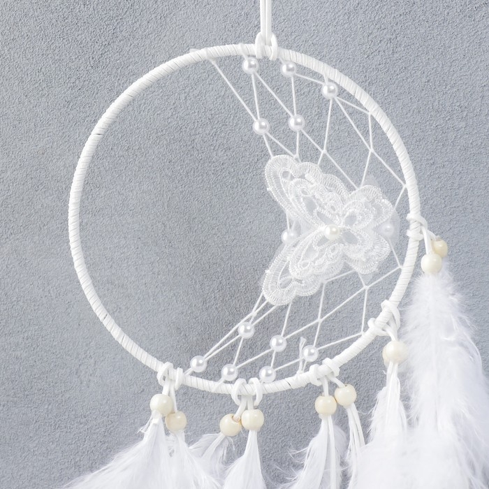 Ловец снов "Бабочка и бусины" белый d=16 см 55х16 см