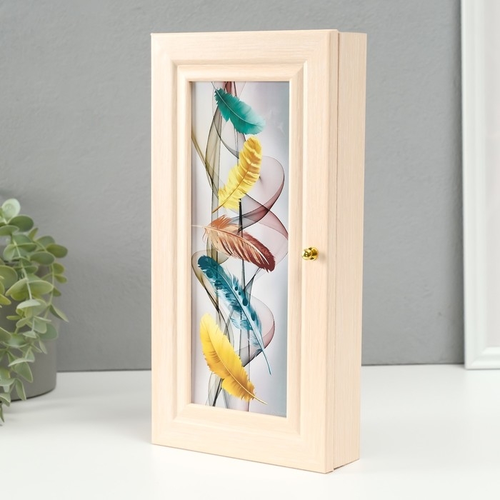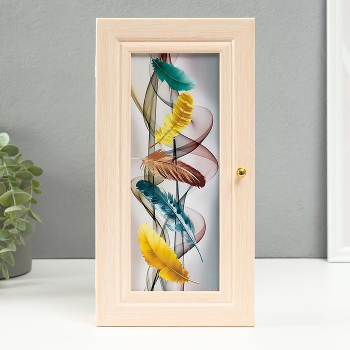 Ключница "Пять перьев" молочный дуб 16х31 см МИКС