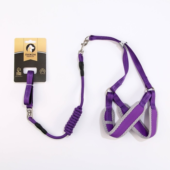 Комплект мягкая шлейка, поводок 120 х 1 см с вертлюгом, S, ОШ 26-67 см, ОГ 26-67 см, фиол