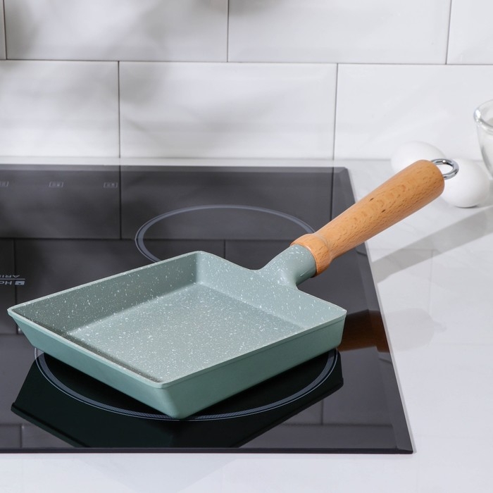 Сковорода «Омлет», 19×15 см, с деревянной ручкой, антипригарное покрытие, индукция