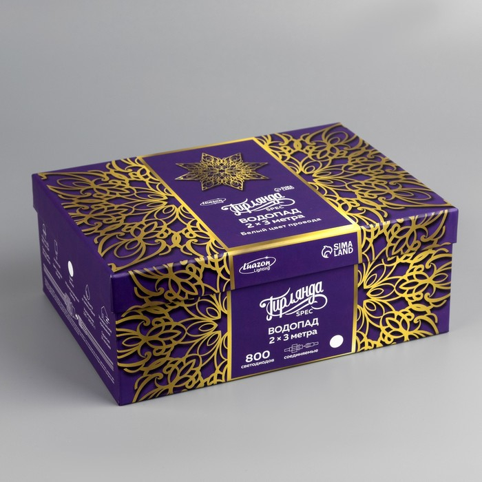 Гирлянда «Водопад» 2 × 3 м, IP44, УМС, белая нить, 800 LED, свечение белое, 8 режимов, 220 В