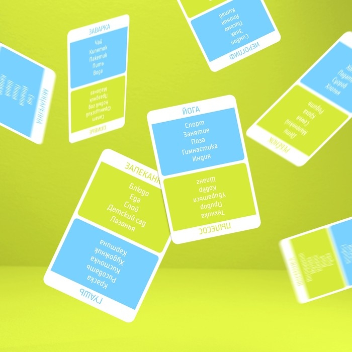 - Каждому участнику необходимо объяснять остальным игрокам слова, расположенные в верхней части карточки, и не использовать слова, находящиеся на нижней части карточки.