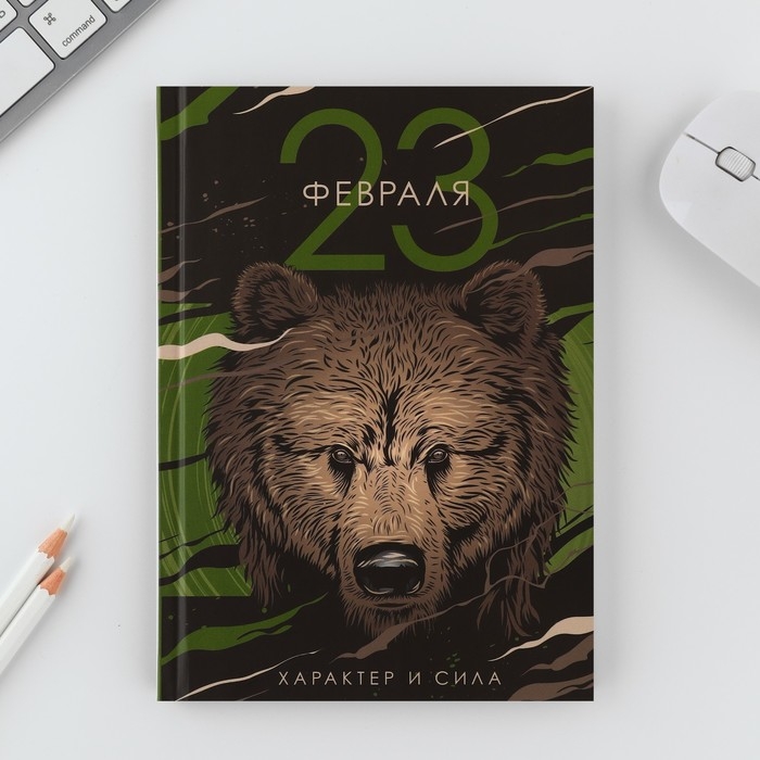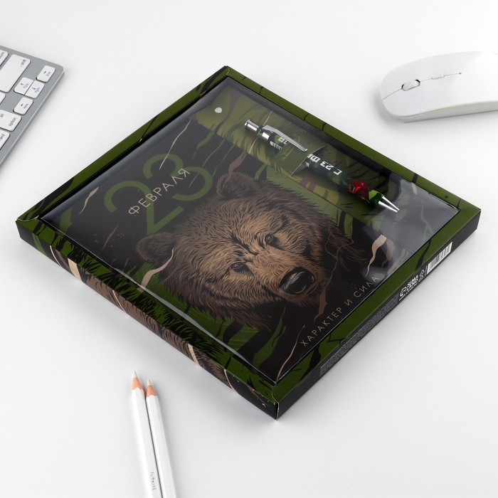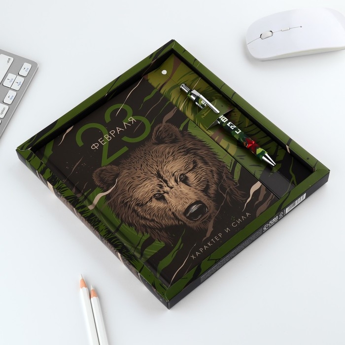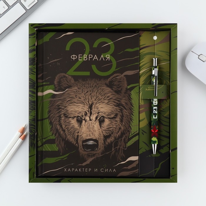 Подарочный набор "23 февраля медведь": ежедневник 80 листов и ручка