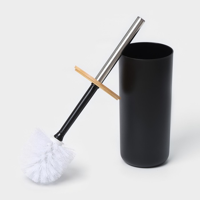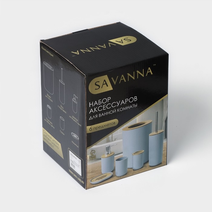 Набор аксессуаров для ванной комнаты SAVANNA «Вуди», 6 предметов (мыльница, дозатор, 2 стакана, ёршик, ведро), цвет чёрный