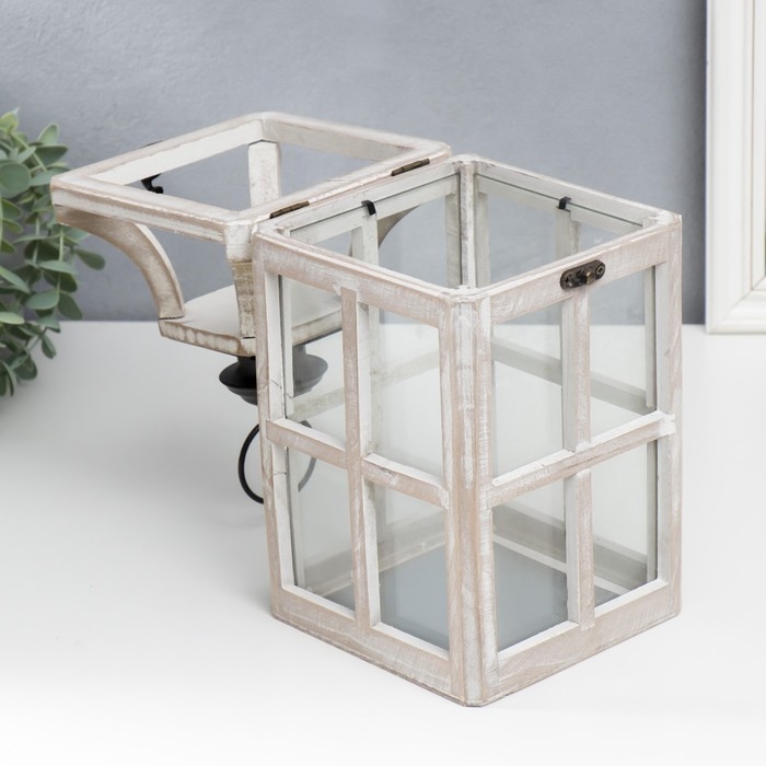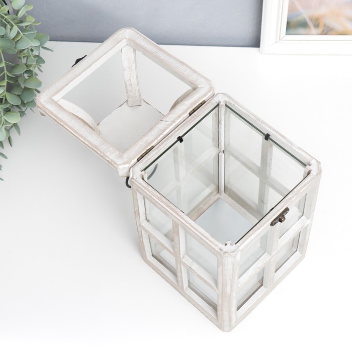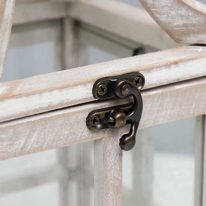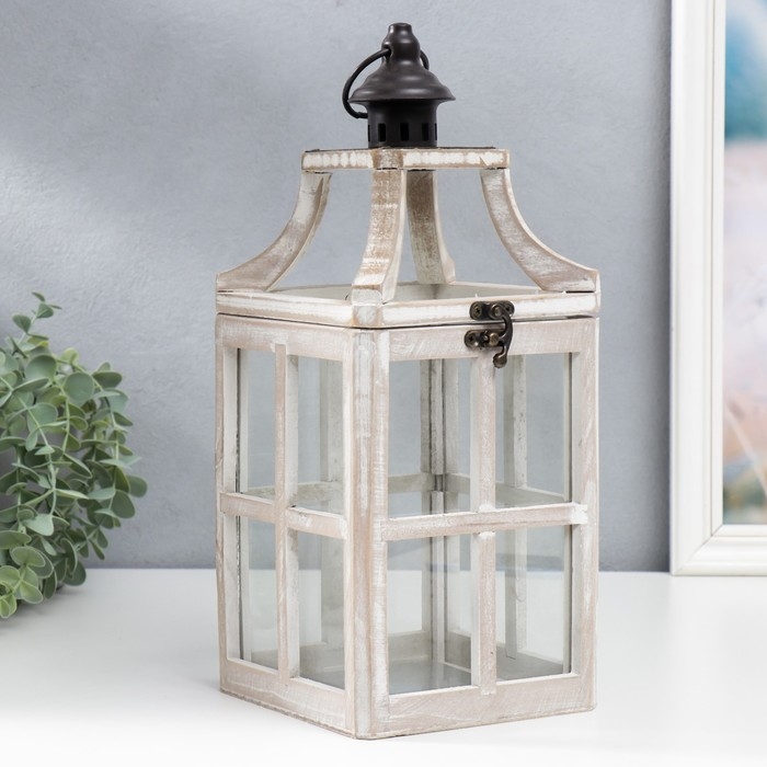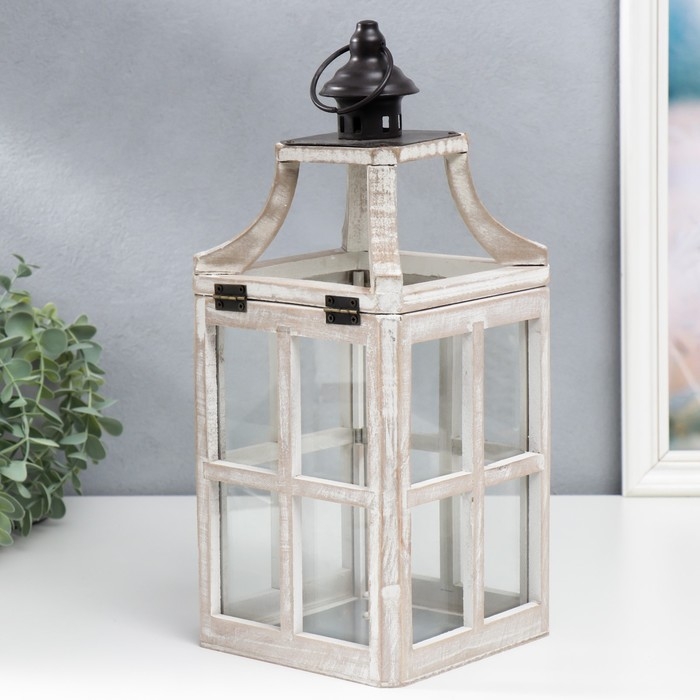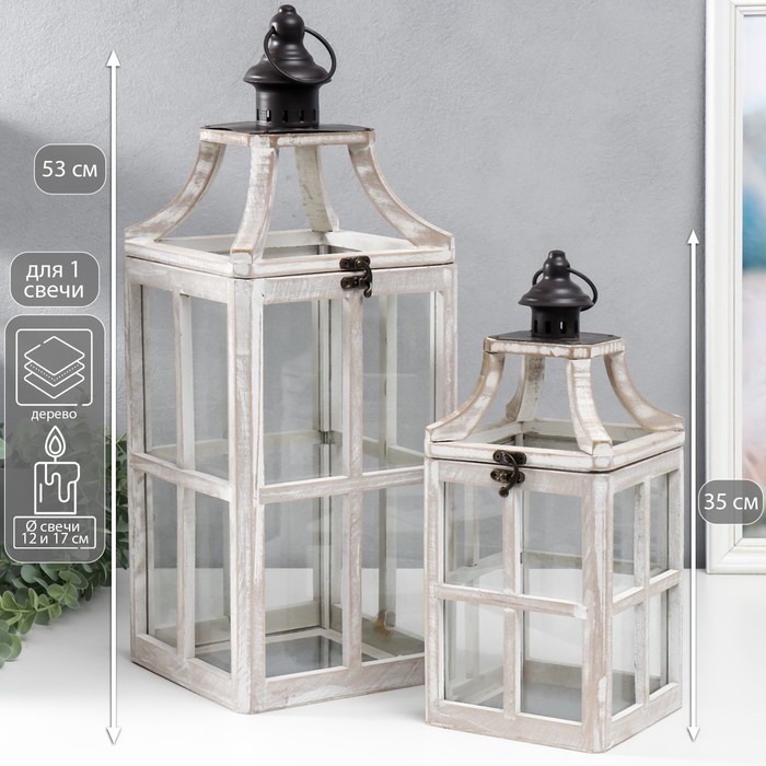 Подсвечник дерево "Фонарь - веранда" белый состаренный набор 2 шт 35х15х15, 53х20х20 см